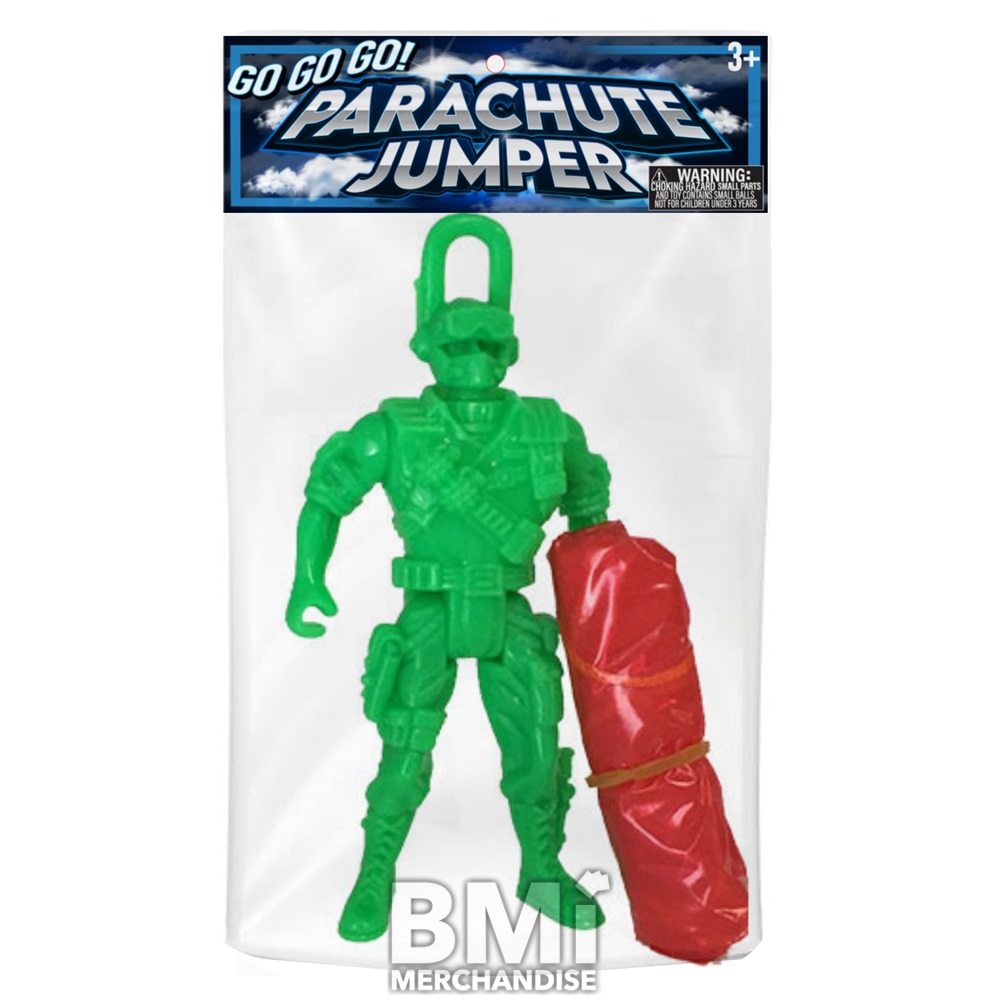 4" MOVEABLE PARACHUTE MEN COME WITH A BRIGHT RED PLASTIC PARACHUTE READY TO ATTACH. THROW THEM HIGH AND SEE HOW FAR THEY FLY BEFORE THEY REACH THE GROUND! MOVEABLE ARMS AND LEGS ADD TO THE OPTIONS OF HOW THEY PARACHUTE ONTO THE PLAYING FIELD OR A WATER LANDING!