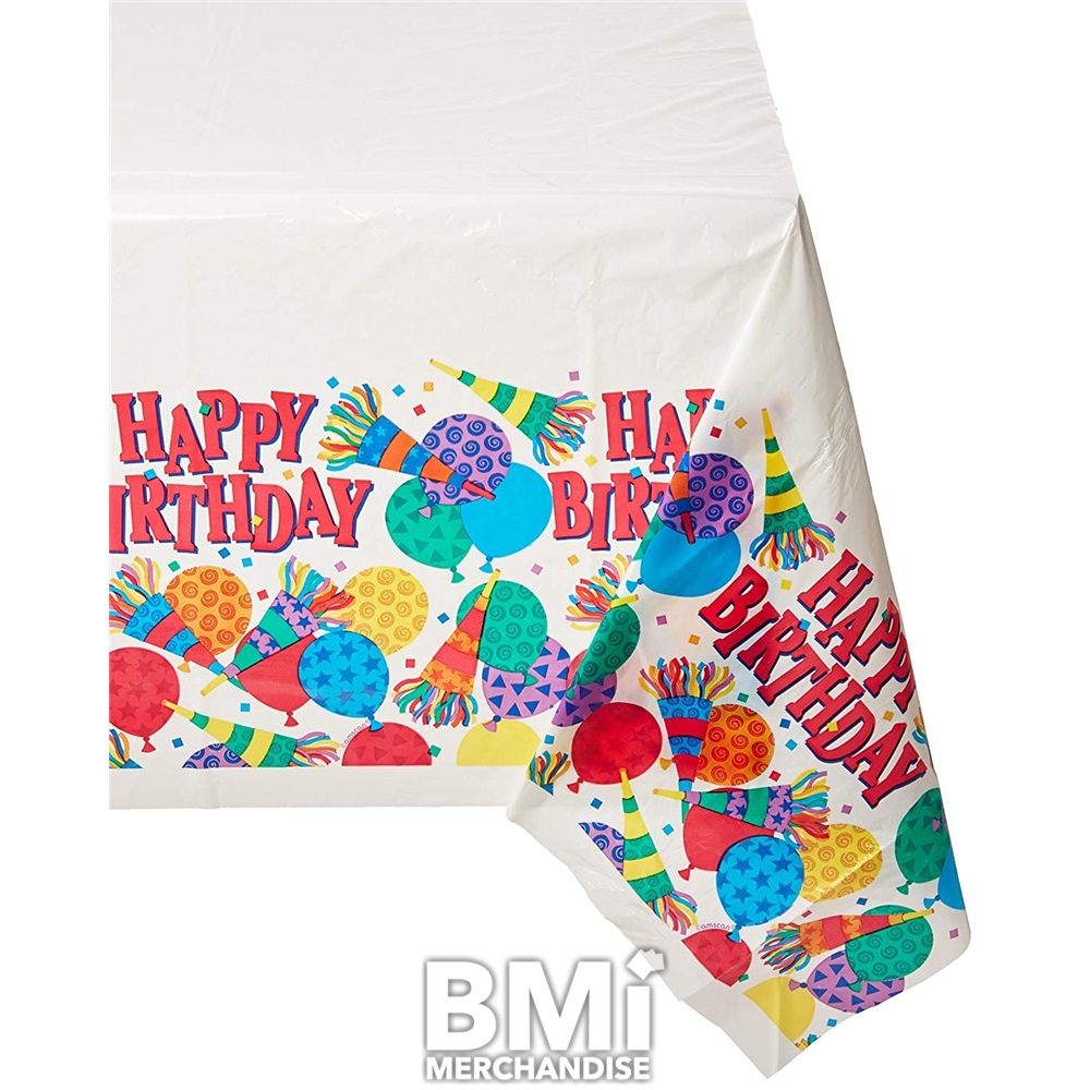 BIRHTDAY HORN PLASTIC TABLE COVER. 54 X 84"