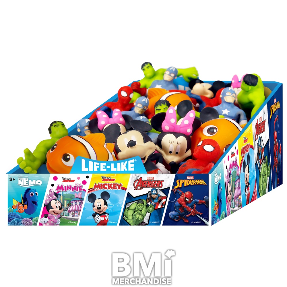 DISNEY MARVEL LIFE LIKE FIGURES COME IN 6 SOFT AND STRETCY STYLES: MICKEY, MINNIE, NEMO, SPIDERMAN, HULK AND CAPTAIN AMERICA. FEATURING REALISTIC DETAILS