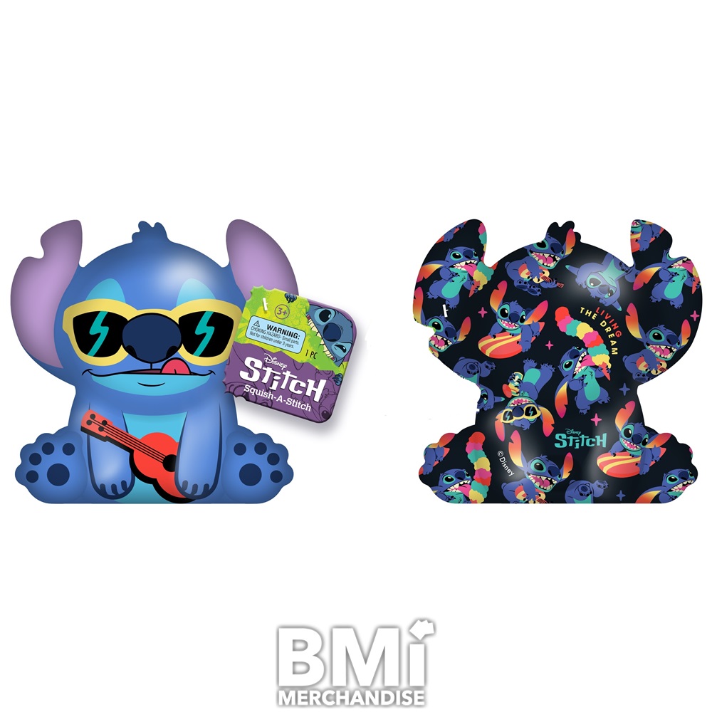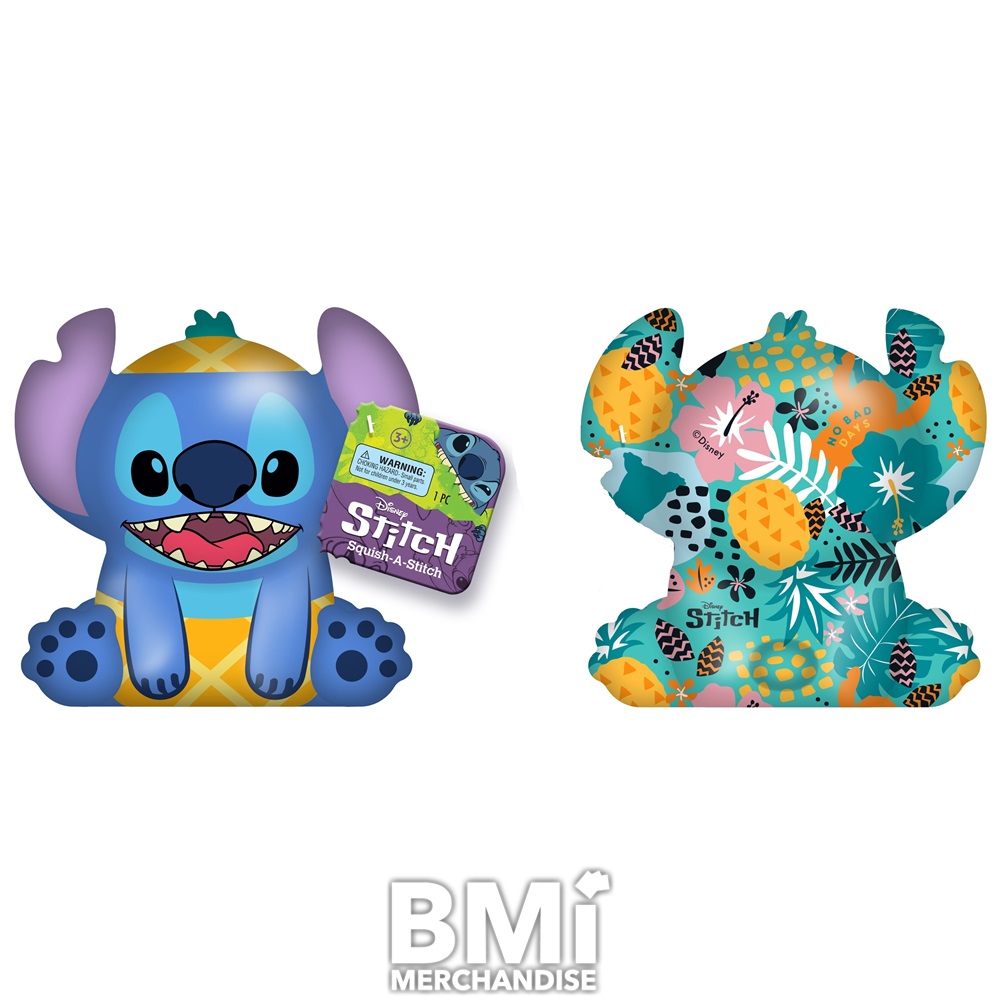 DISNEY SQUISH A STITCH IS A SOFT SQUISHY SLOW RELEASE FOAM FIGURE THAT STANDS AT 3.75" HIGH AND COMES AVAILABLE IN 4 DIFFERENT STYLES WITH A 2 SIDED DESIGN. ISLAND VIVE STITCH, NO BAD DAYS STITCH, EXPERIMENT 626 STITCH, AND LIVING THE DREAM STITCH. FRONT WILL FEATURE STITCH AND THE BACK IS A CORRESPONDING ART DECO DESIGN.