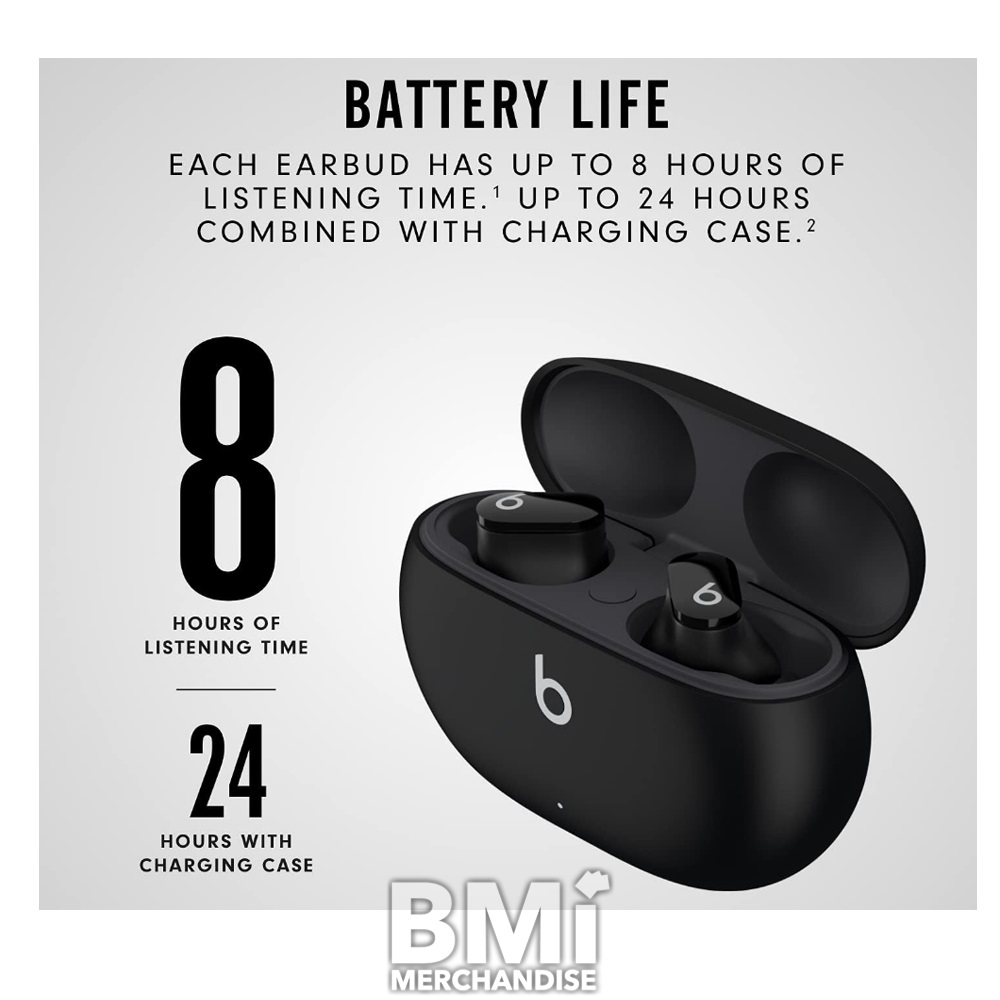 TRUE WIRELESS NOISE CANCELLING BEATS STUDIO BUD ARE MADE FOR MUSIC. DESIGNED WITH A CUSTOM ACOUSTIC PLATFORM, BEATS STUDIO BUD ARE ENGINEERED TO DELIVER POWERFUL, BALANCED SOUND IN A COMPACT, IN-EAR FORM FACTOR. THE RESULT — IMMERSIVE SOUND THAT PULLS THE EMOTION OF MUSIC FROM THE STUDIO TO YOUR EARS TO KEEP YOU INSPIRED. THESE EARBUDS FEATURE TWO LISTENING MODES, ACTIVE NOISE CANCELLING (ANC) AND TRANSPARENCY MODE, TO GIVE YOU TOTAL CONTROL OF YOUR SOUND. EACH EARBUD HAS UP TO 8 HOURS OF LISTENING TIME¹ WITH TWO ADDITIONAL CHARGES PROVIDED BY ITS POCKET-SIZED CHARGING CASE TO GIVE YOU UP TO 24 HOURS OF COMBINED PLAYBACK.² BEATS STUDIO BUD ALSO OFFER SIMPLE ONE-TOUCH PAIRING FOR APPLE³ AND ANDROID4 DEVICES.