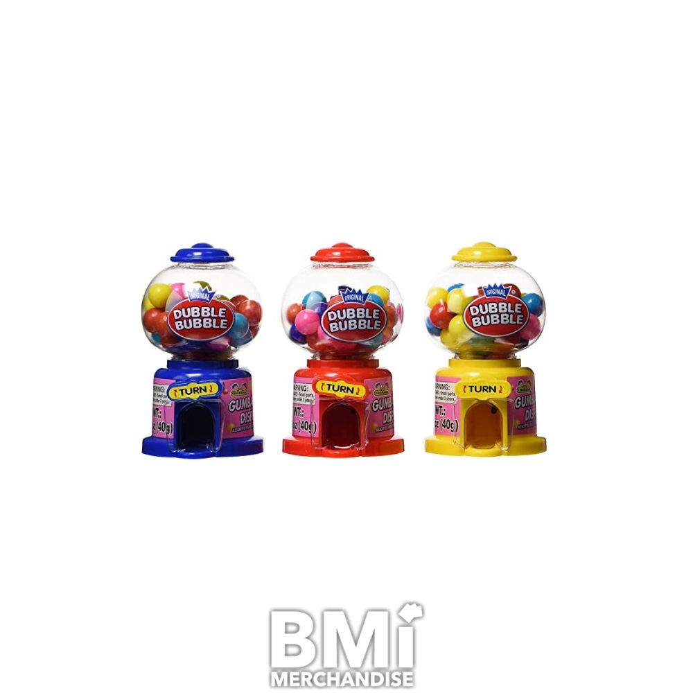 DUBBLE BUBBLE GUM DISPENSER. HOW SWEET IT IS! ENJOY THE CLASSIC DUBBLE BUBBLE GUM WITH YOUR OWN MINI FUN GUMBALL DISPENSER. GUMBALLS AND DISPENSERS COME IN ASSORTED COLORS.