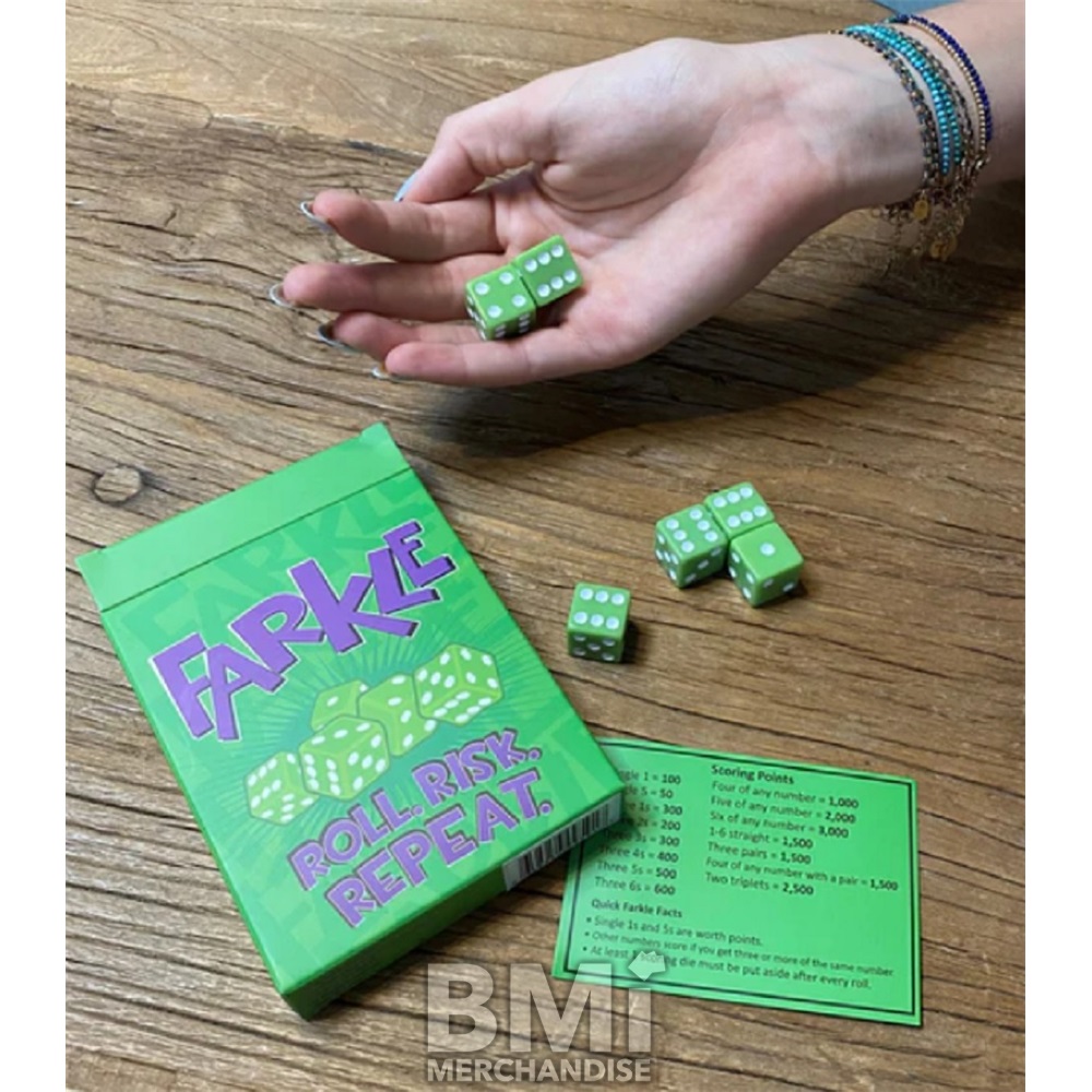 - FARKLE DICE: Will you go big, or will you go bust? Will you win? Or will you lose? Roll, risk, repeat!