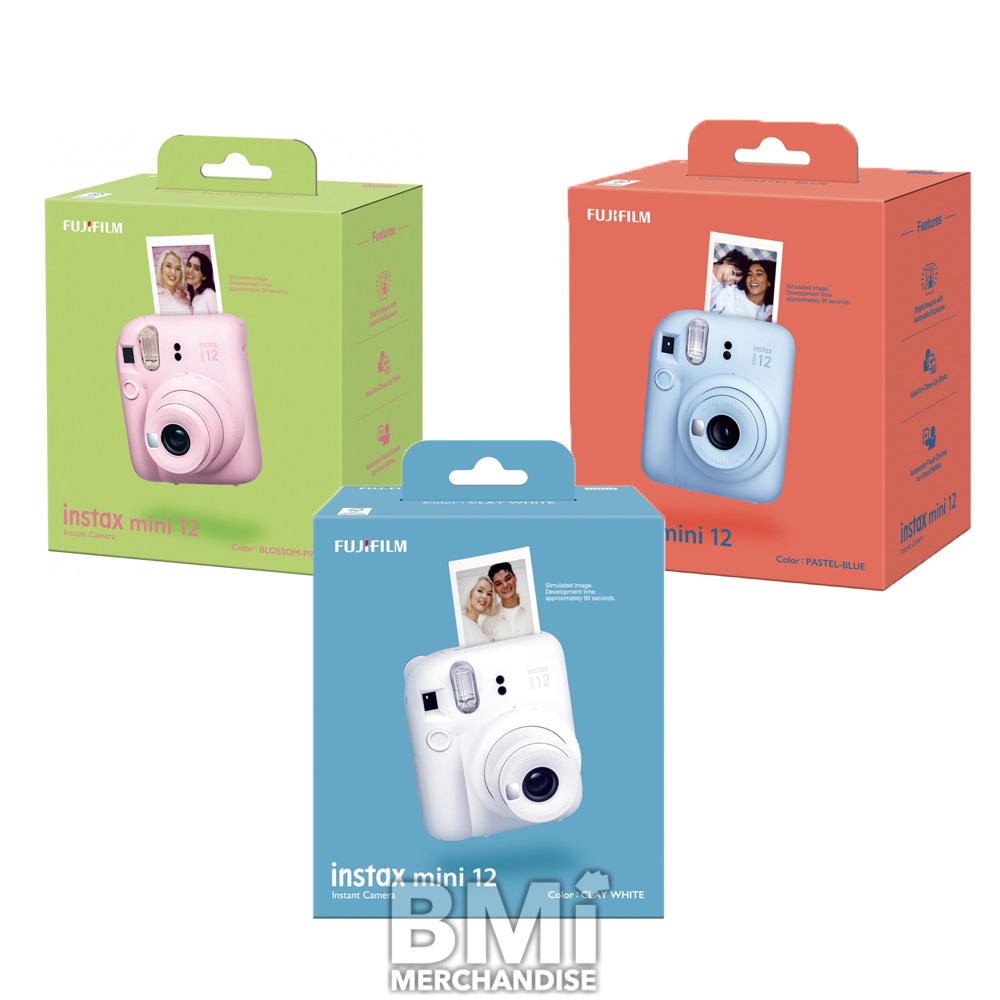 FUJI INSTAX MINI 12 INSTANT CAMERA. CUTE AND COMPACT BODY DESIGN FOR INSTANT PHOTOS AND INSTANT FUN. EASY TO OPERATE, JUST PRESS THE POWER BUTTON, ADJUST THE BRIGHTNESS DIAL, AND SHOOT AND OBTAIN YOUR PICTURES INSTANTLY. PICTURES PRINT ON ADORABLE SIZED MINI POLAROIDS!