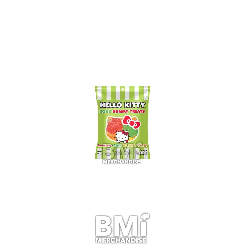 HELLO KITTY SOUR GUMMI TREATS 5OZ BAG. EACH 5OZ BAG CONTAINS HELLO KITTY SHAPED GUMMIES WITH A TANGY PUNCH IN 4-FLAVORS: STRAWBERRY, APPLE, PINEAPPLE, AND ORANGE.