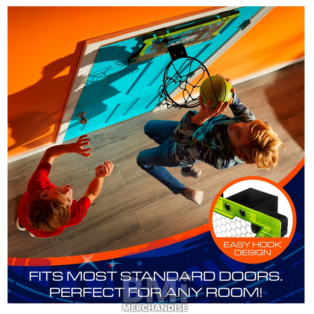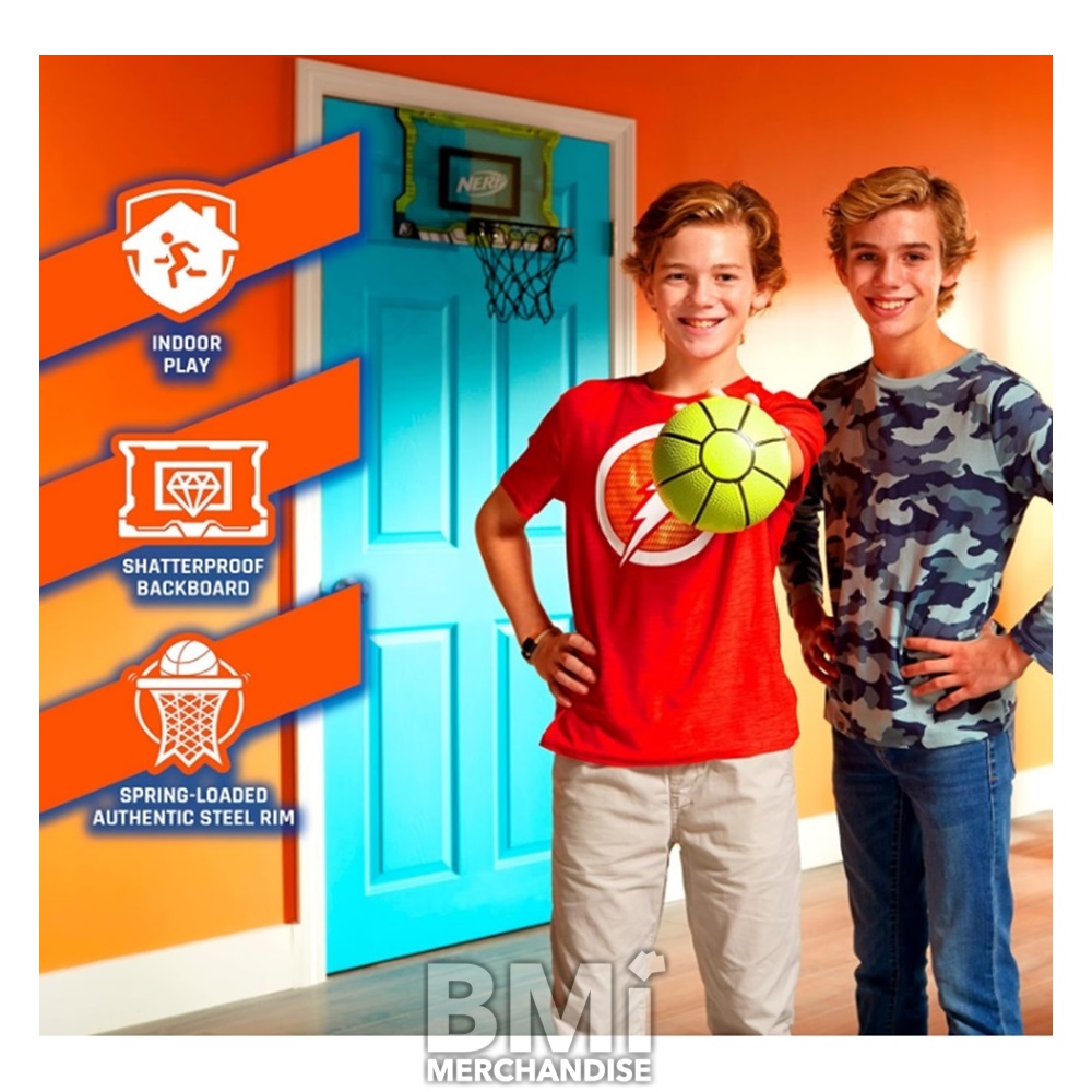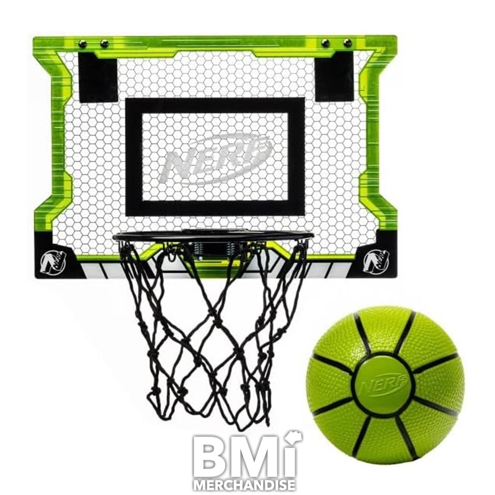 SET COMES WITH 5 INCH NERF MINI BASKETBALLS AND SHATTER-PROOF BACKBOARD