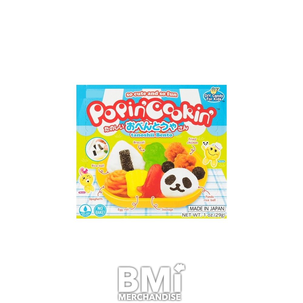 POPIN COOKIN TANOSHI BENTO DIY CANDY LUNCH BOX KIT. MAKE DELICIOUS TASTING LUNCH THEMED JELLY CANDY WITH THIS POPULAR DIY CANDY KIT FROM JAPAN. JUST ADD WATER, NO BAKING NEEDED. MAKES MINIATURE NOODLES, SAUSAGE, RICE BALLS, AND FRIED CHICKEN.